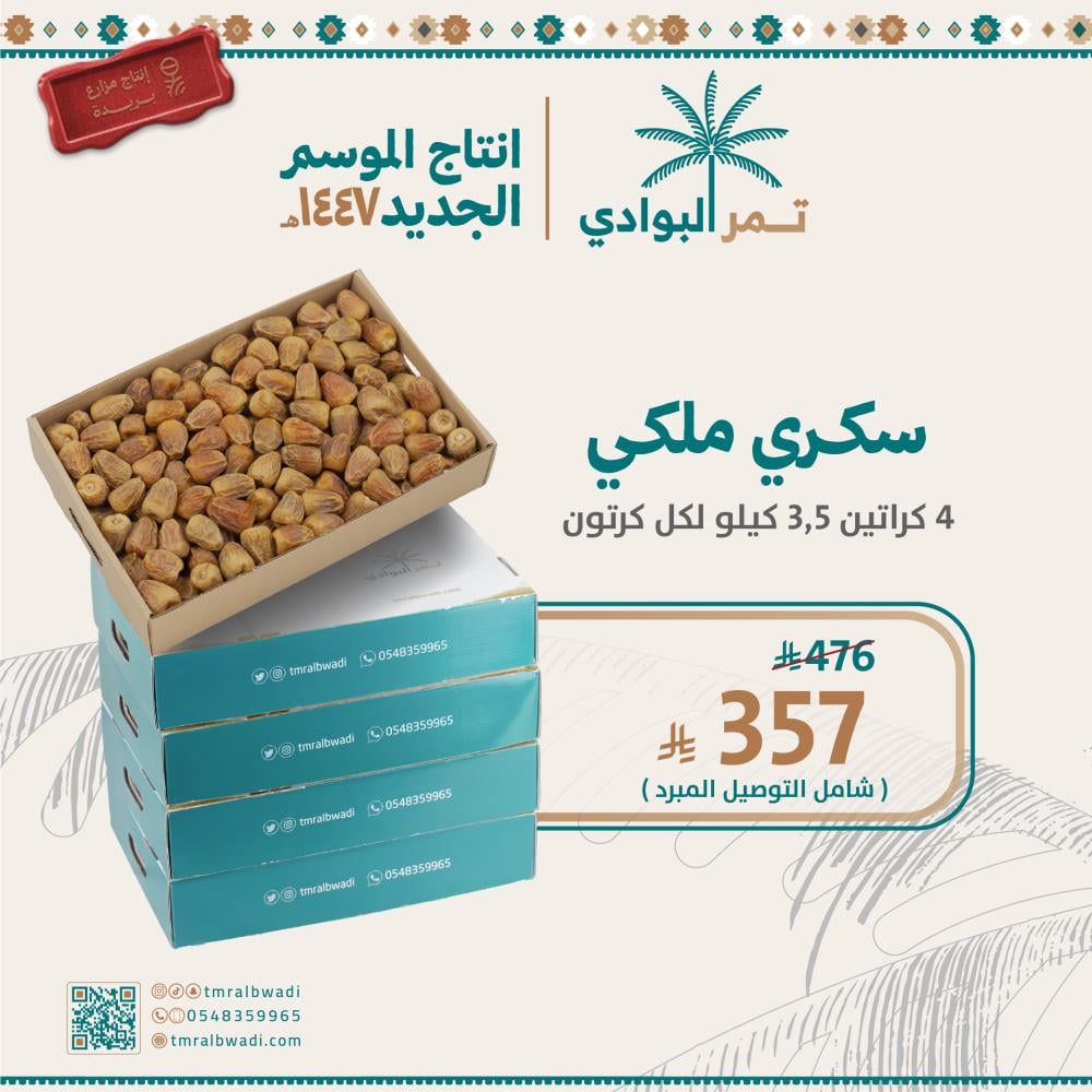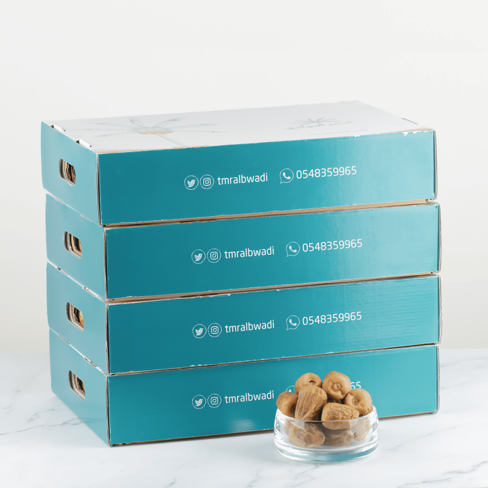4 كراتين تمر سكري مفتل من مزارع في منطقة الشيحية في بريدة والمعروفة بجودة التمر السكري وكبر حجم التمر على مستوى المملكة.